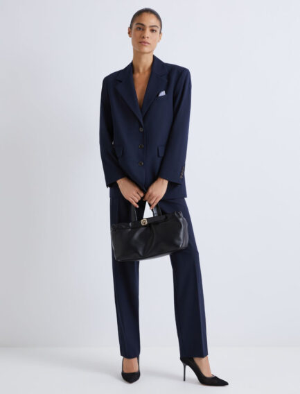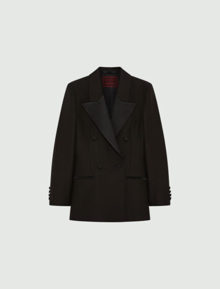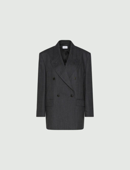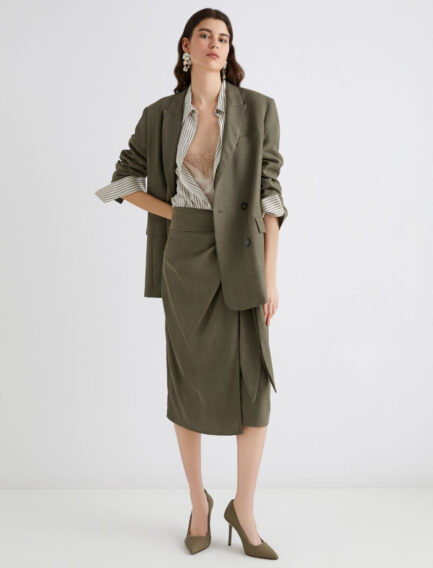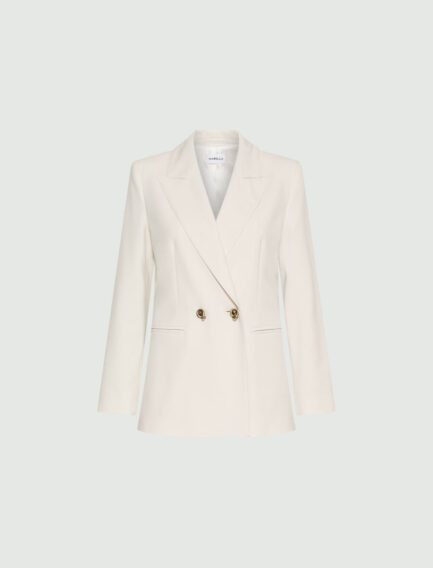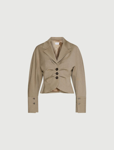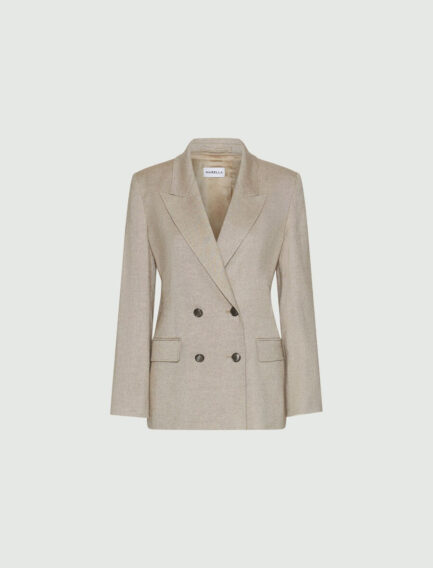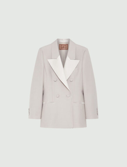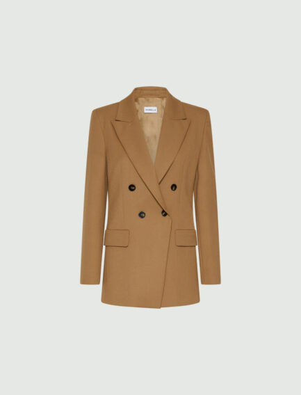 Blazer croisé en sergé de laine mélangée – MARRON NOISETTE