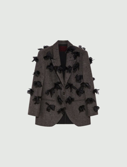 Blazer à motifs floraux et broderies – MARRON FONCÉ