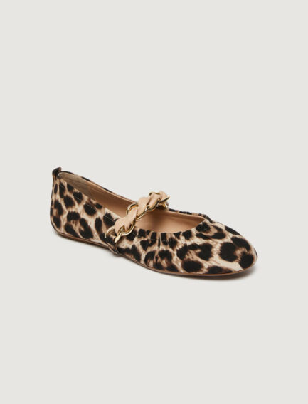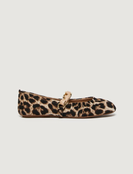 Ballerines en tissu imprimé animal avec détail de chaîne tressée – Beige nuancé