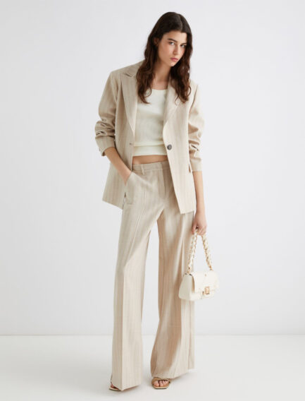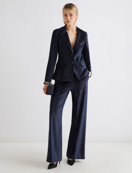 Blazer en velours côtelé à simple boutonnage – BLEU NUIT