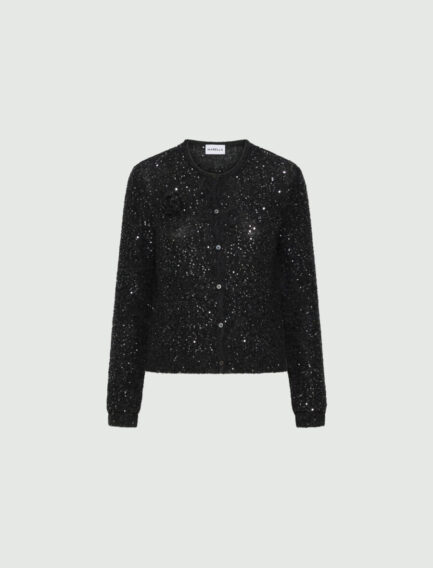 Gilet en laine orné de micro-paillettes – GRIS MÉLANGE