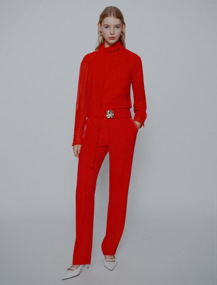Pantalon droit à ceinture – ROUGE