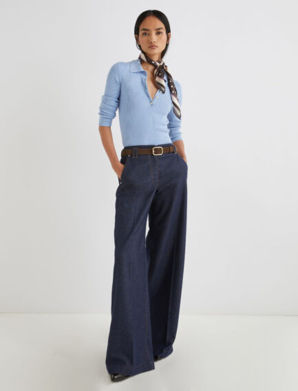 Pantalon large en coton stretch – MARINE