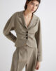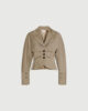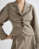 Une réinterprétation sophistiquée du blazer croisé, avec des manches amples et des fronces pour une silhouette dynamique. À associer au pantalon assorti pour une tenue résolument contemporaine.