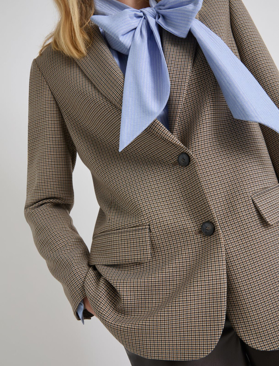 • Blazer doublé en tissu extensible en viscose mélangée, orné d’un fil de lurex ultrafin