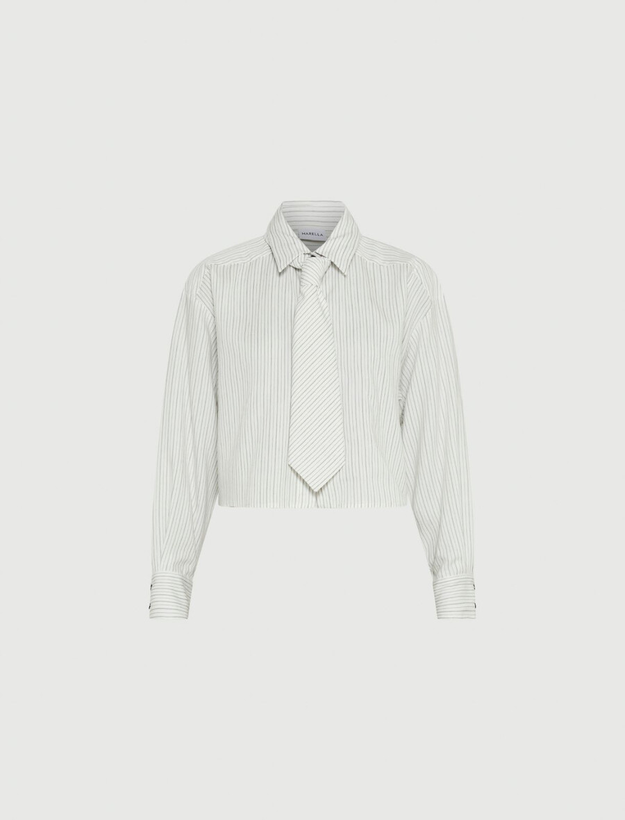 Un style bon-ton et des formes contemporaines en parfaite harmonie : ce nouveau chemisier arbore un élégant tissu sergé brillant et une coupe raffinée et impeccable, avec une taille courte pour une silhouette résolument moderne.