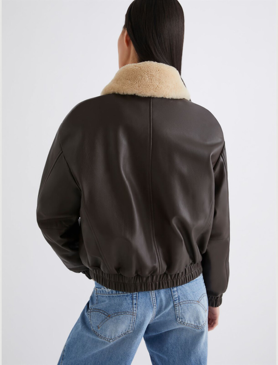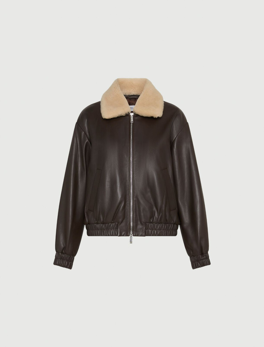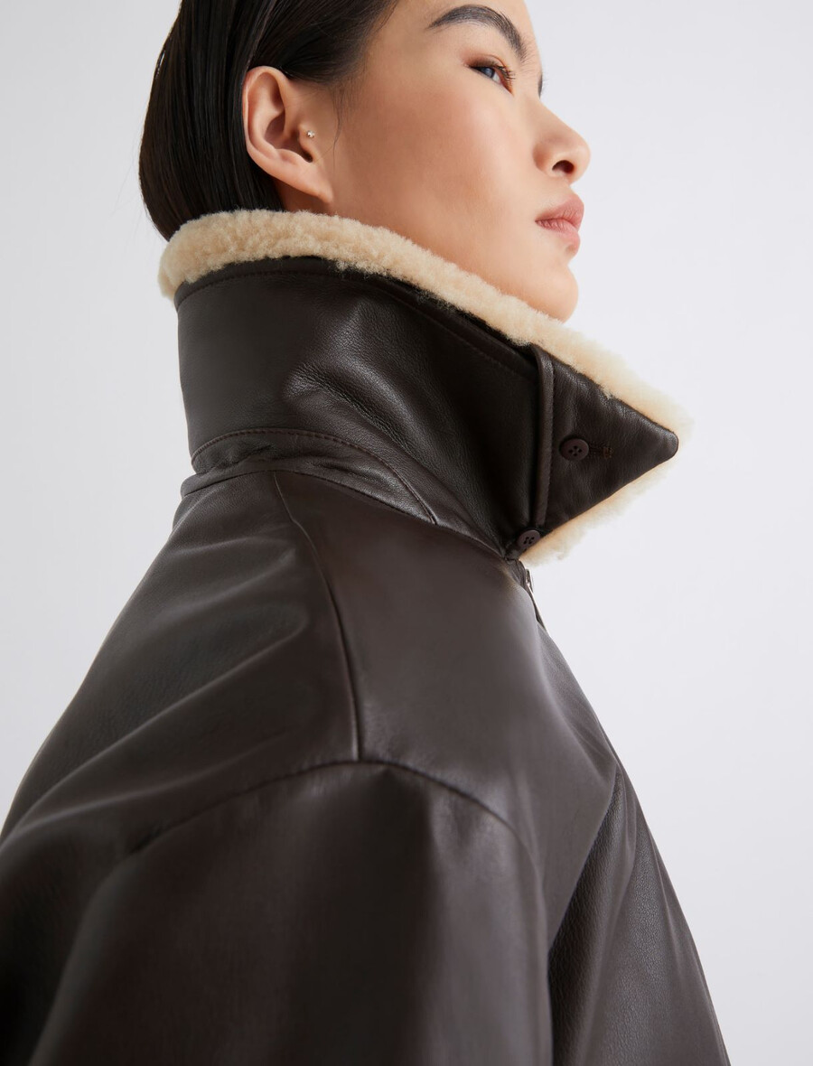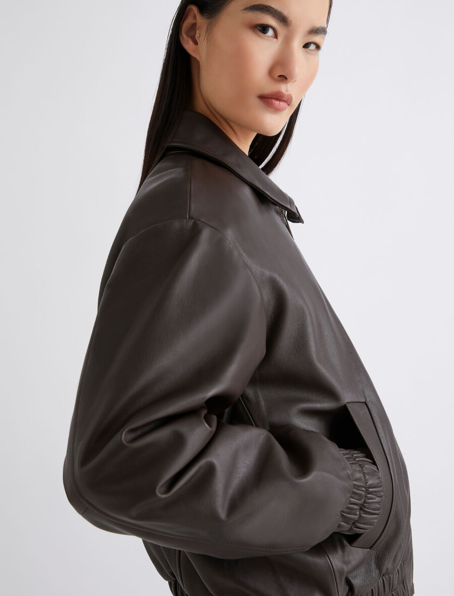 - Blouson aviateur en cuir avec un léger rembourrage intérieur et une doublure matelassée