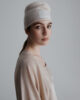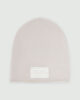 Ce bonnet doux et fin en mélange de cachemire est orné d’une grande étiquette de marque.