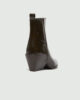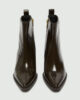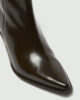 Bottes montantes d’inspiration cowboy. Ce modèle présente un bout pointu, un talon large et une silhouette diagonale. La trépointe saillante apporte une touche audacieuse.