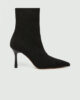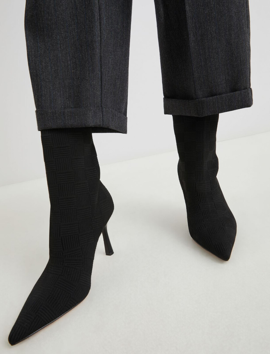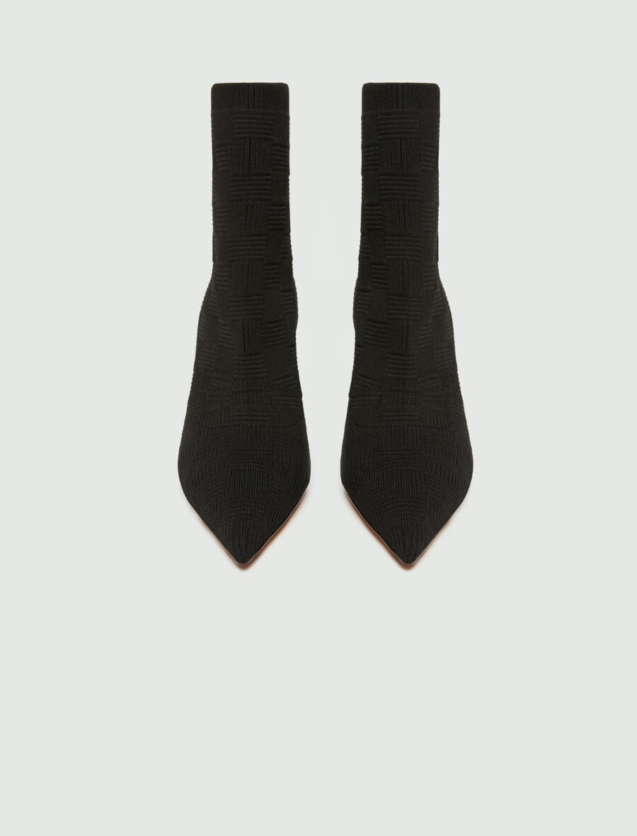 Bottines à bout pointu en maille stretch avec détails texturés en relief. Le talon fin mat apporte une touche tendance.