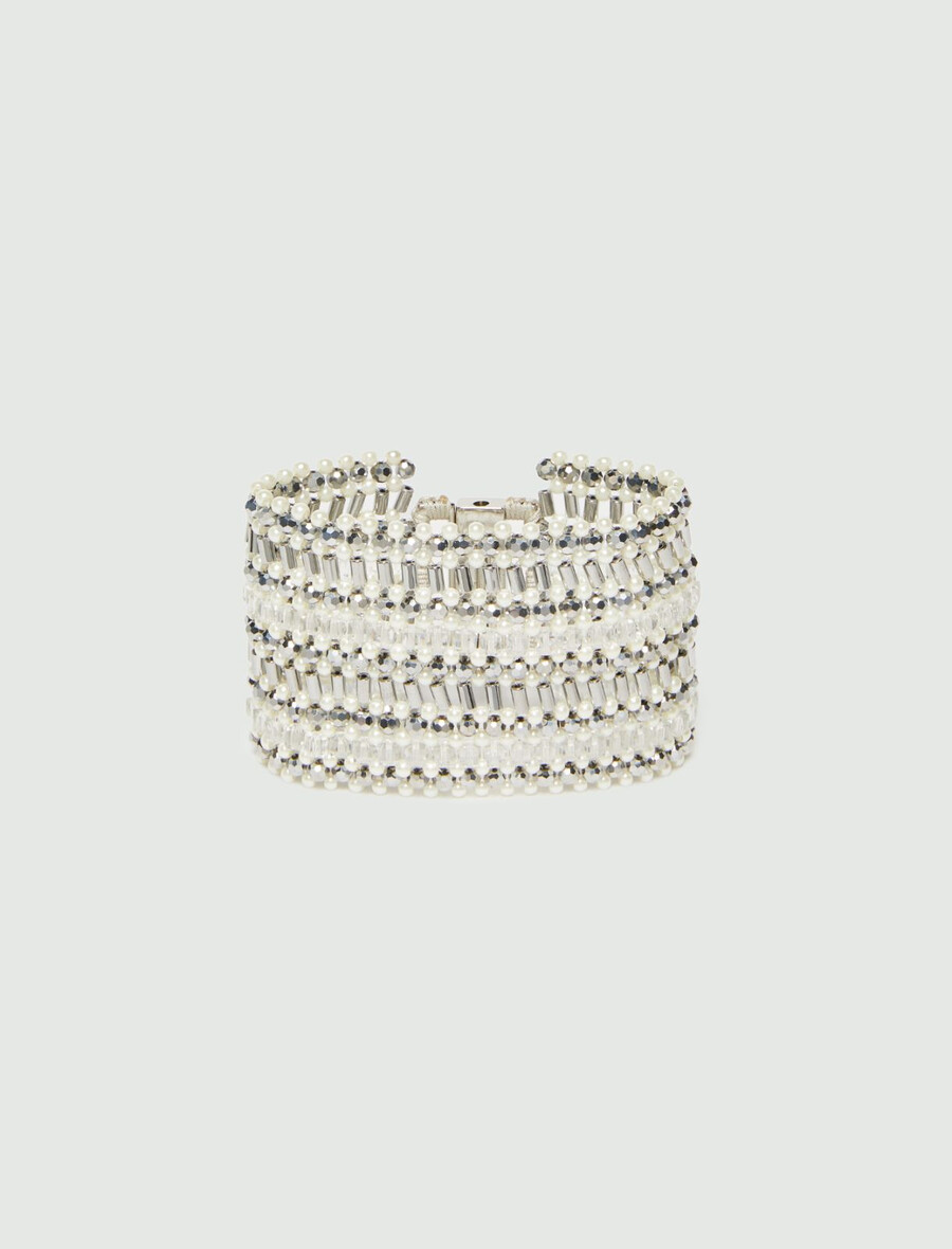 Ce bracelet de perles apportera une touche chic et décontractée à vos tenues quotidiennes et s’accordera parfaitement avec les blouses et pulls de la collection. Il est orné d’appliqués de micro-perles et se ferme par un fermoir à pression.