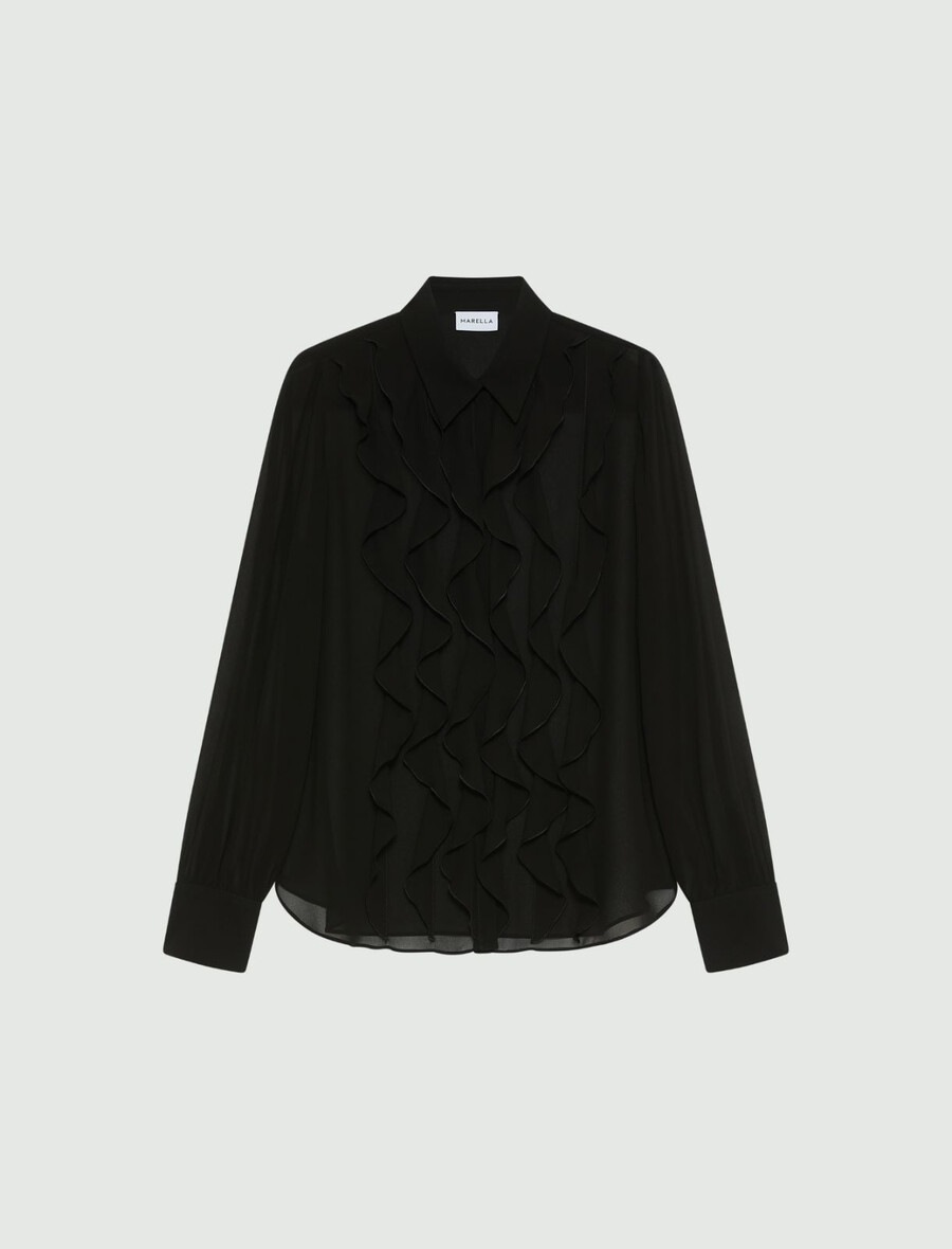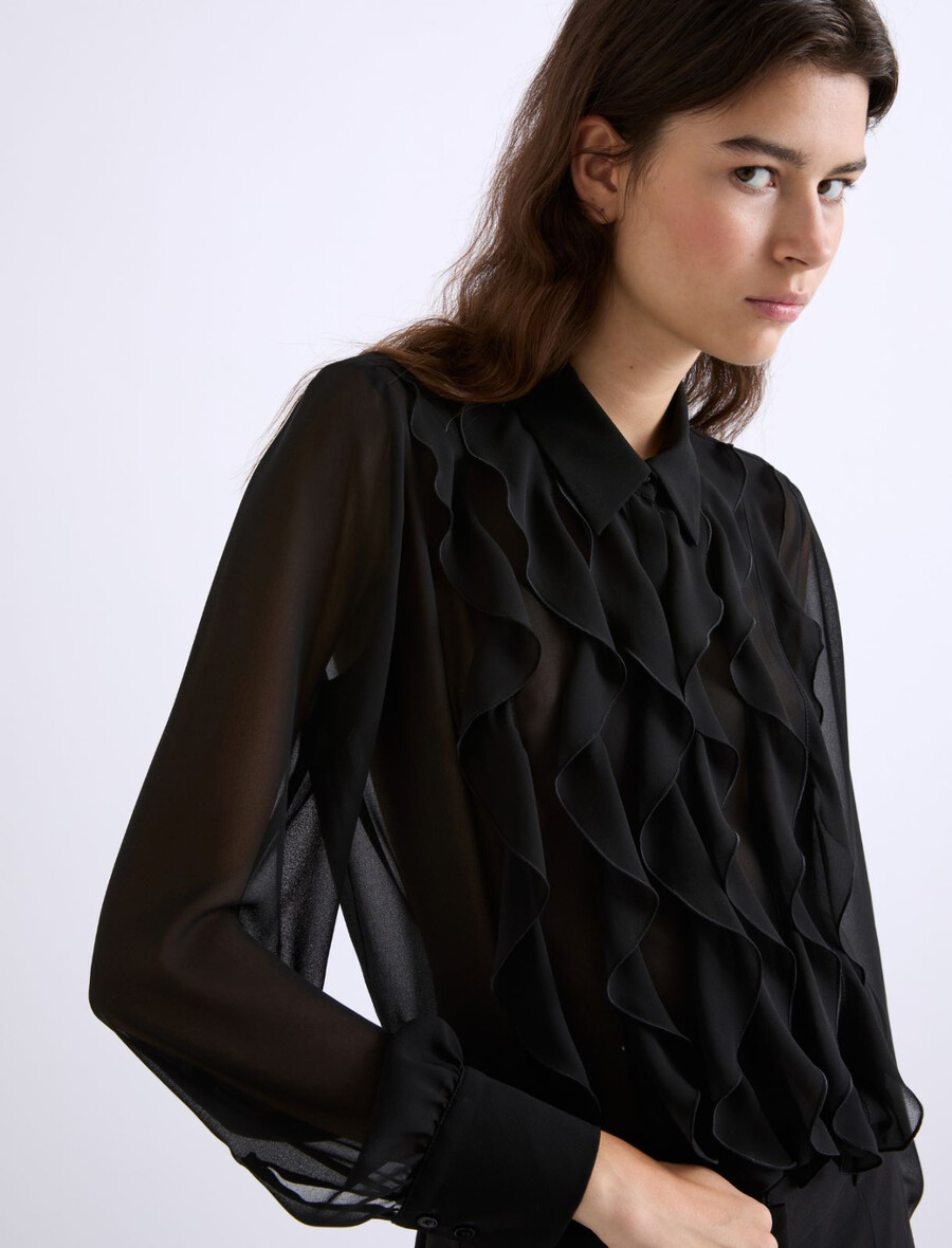 Chemise en georgette à volants – NOIRE
