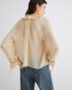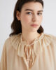 Chemise en georgette de soie pure, ornée d’un long froncement souple au niveau de l’encolure, pour une allure romantique. À porter avec un jean et une veste en cuir pour un contraste ultra-tendance.