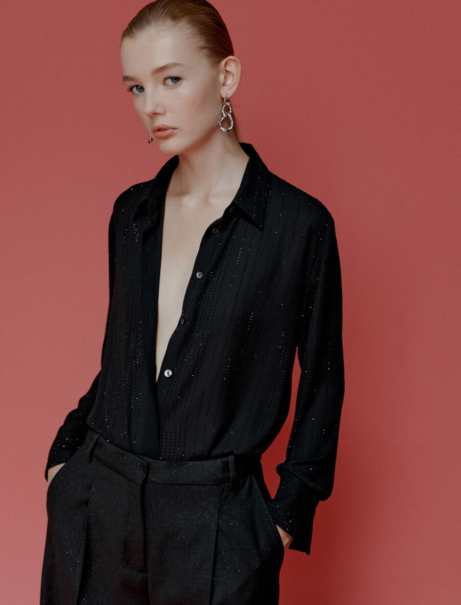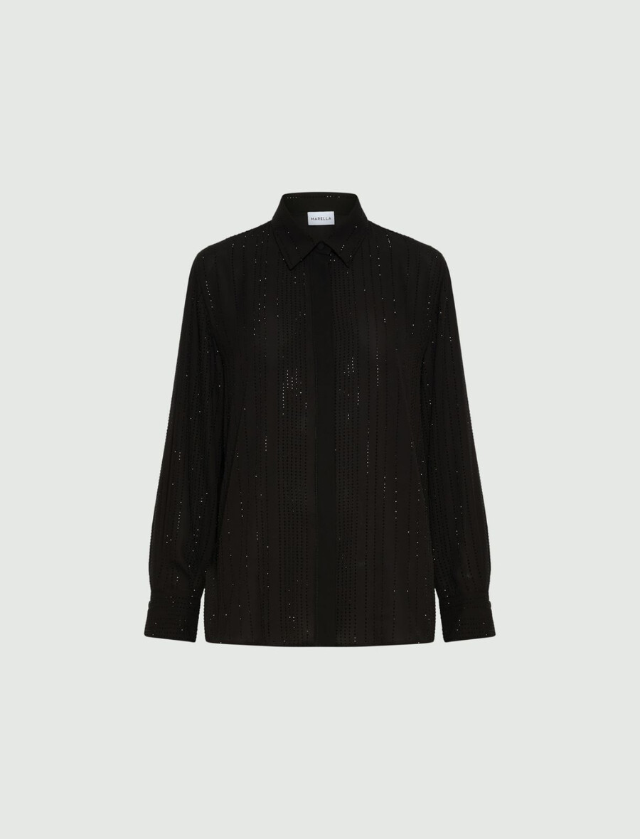 Chemise en georgette ornée de strass – NOIRE