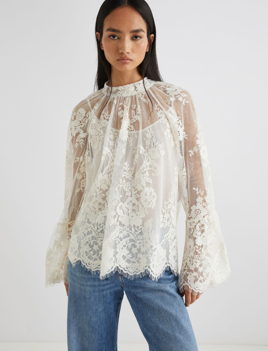 Envie d’un style bohème parfait au quotidien ? Chaque instant devient spécial avec ce chemisier, grâce à sa dentelle de Chantilly et à sa coupe ample au niveau du buste et des manches. Osez un look corsaire subtilement romantique avec un jean.