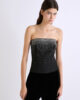 Ce corset ajusté est orné de clous et de strass scintillants en cascade. Son encolure droite et sa coupe épurée le rendent idéal pour des tenues élégantes, avec un pantalon assorti ou un blazer à la coupe décontractée.
