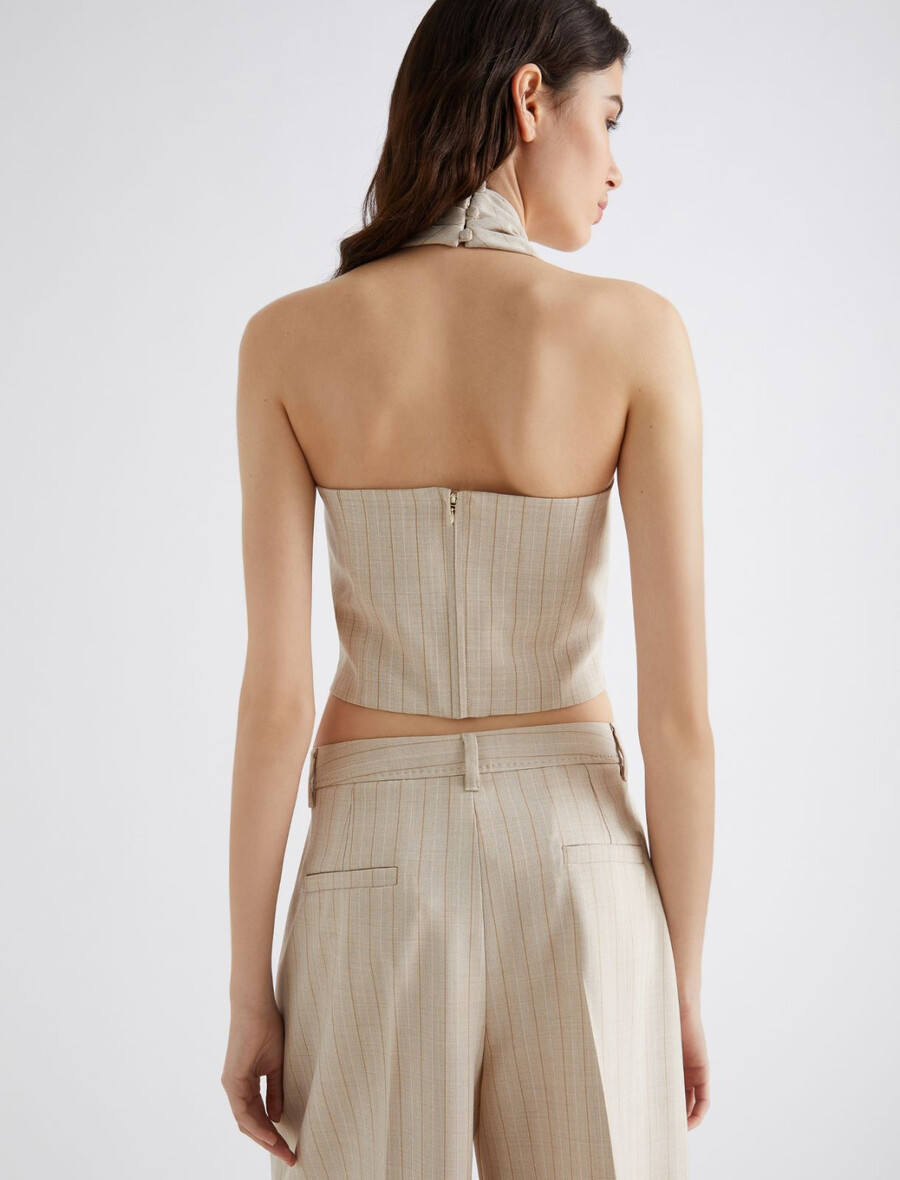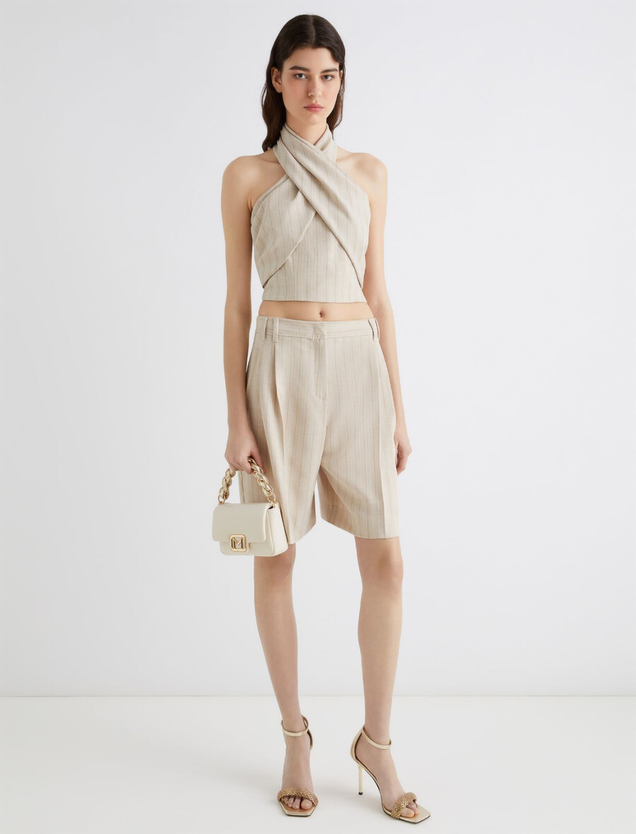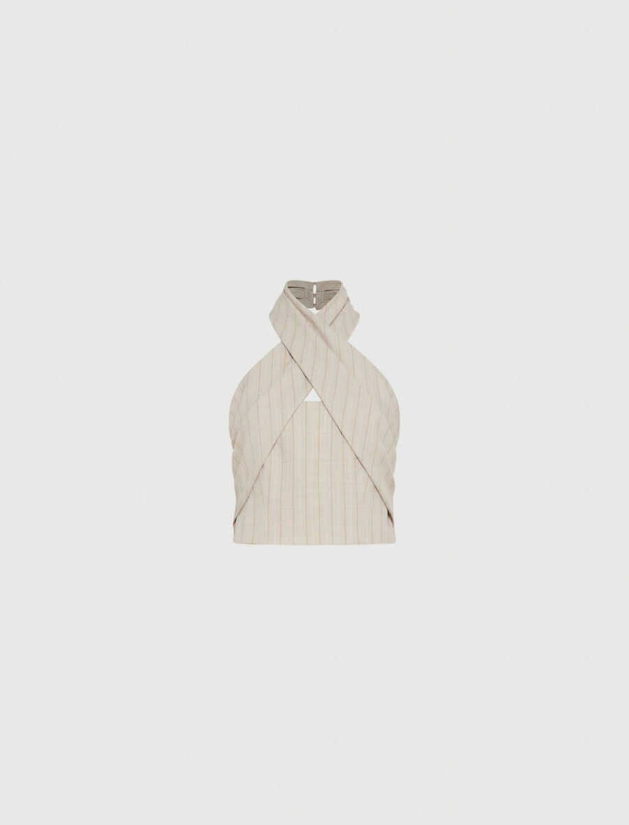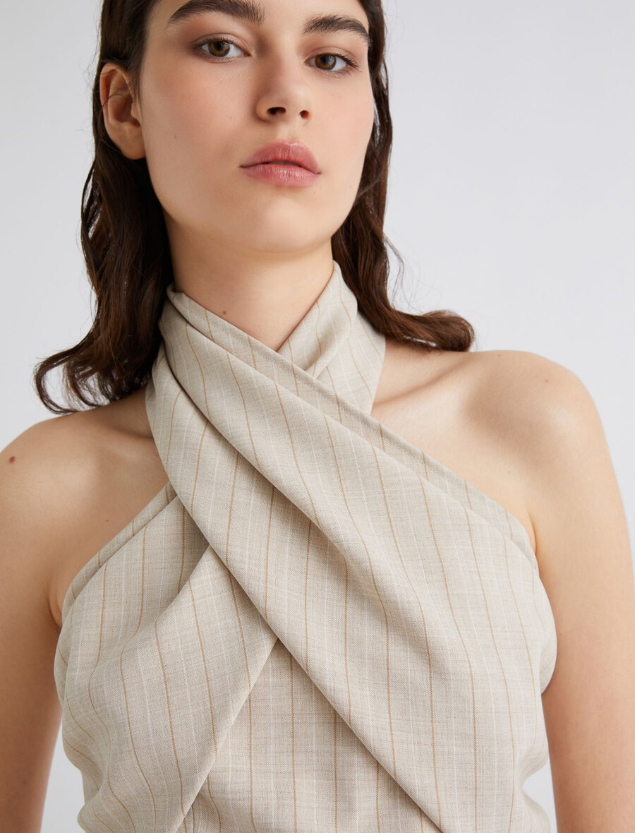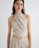 Le nouveau top iconique de la saison présente une coupe courte, un décolleté épaules dénudées et un détail croisé sensuel sur le devant. Élégance urbaine et sensualité s’y conjuguent à la perfection.