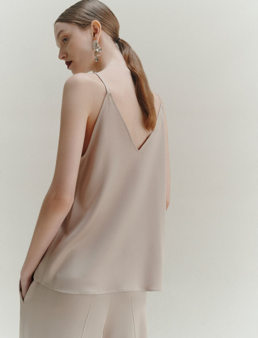 Ce top en satin est toujours à la hauteur, grâce à sa coupe féminine ultra-raffinée, ses fines bretelles et son décolleté flatteur devant et dos.