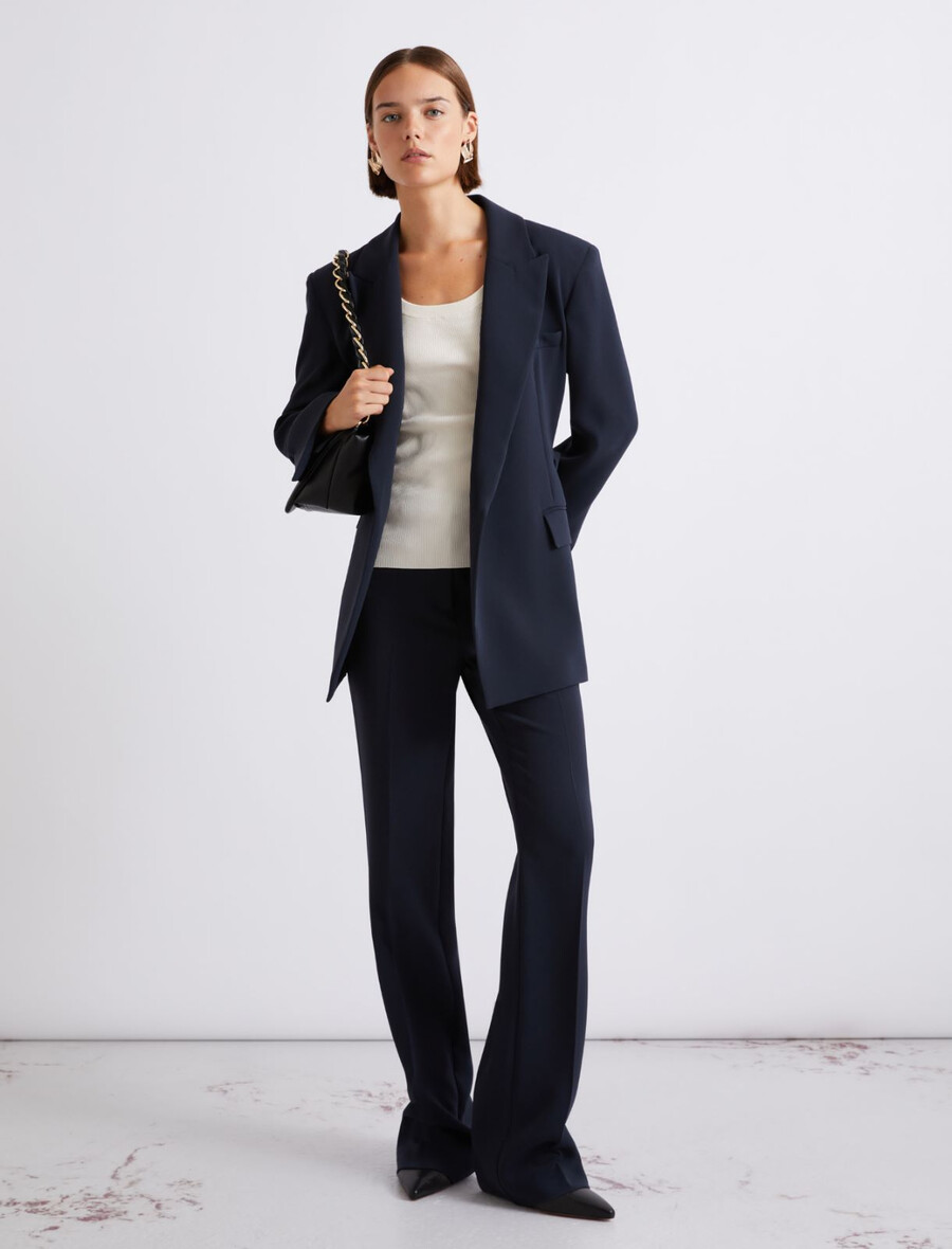 Pièce maîtresse de toute tenue de saison superposée : ce débardeur en maille côtelée fine allie fonctionnalité et style professionnel dans un parfait équilibre de féminité.
