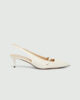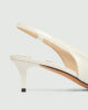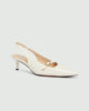 L’élégance d’une bride arrière rencontre le raffinement du cuir nappa : cette nouvelle version à bout pointu et talon fin allie glamour et féminité.