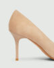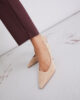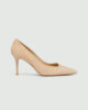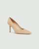 Un col carré asymétrique et un bout pointu : ces nouveaux escarpins affichent une allure résolument tendance. Ce modèle polyvalent se marie aussi bien avec des pantalons tailleur qu’avec des robes fluides et les jupes de la collection.