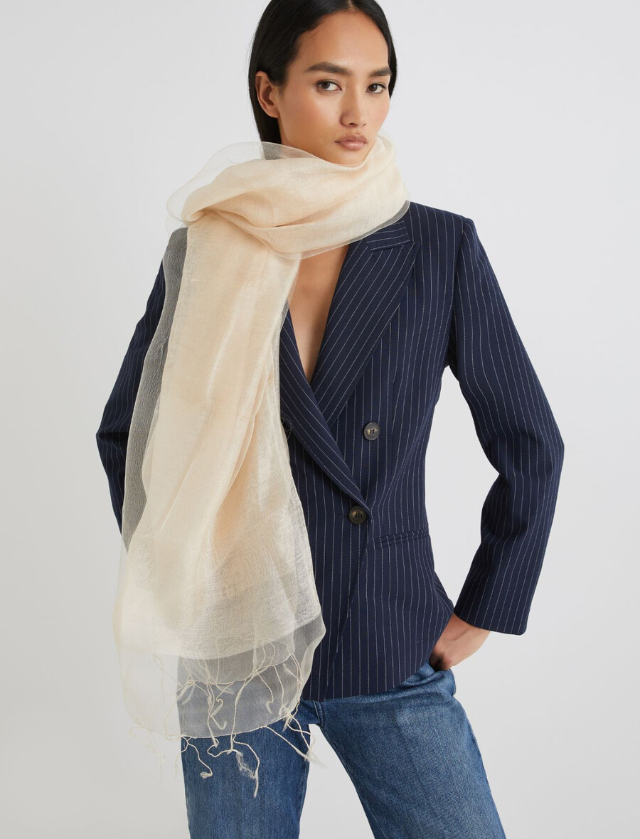 Cette étole ample et enveloppante en soie mélangée est un accessoire polyvalent qui se porte aussi bien avec un blazer qu’avec un t-shirt. Un résultat toujours impeccable.