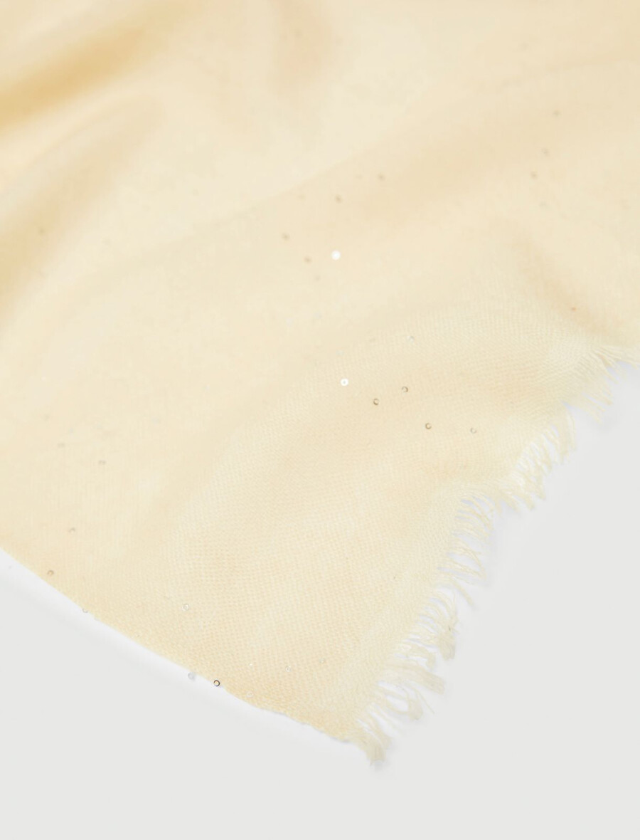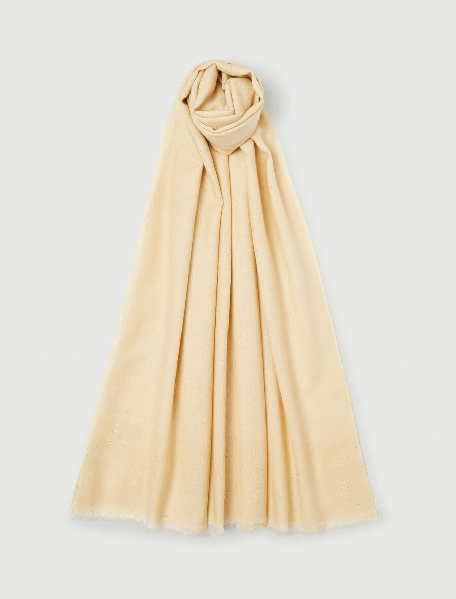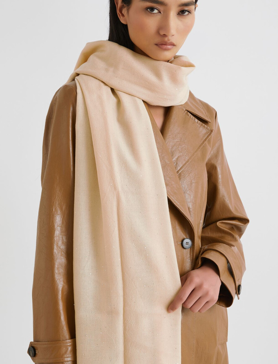 Parée d’étoiles pour le jour comme pour la nuit : cette nouvelle étole en laine est ornée de micro-paillettes. Elle scintille au soleil et se porte aussi bien avec un blazer qu’avec un pull.