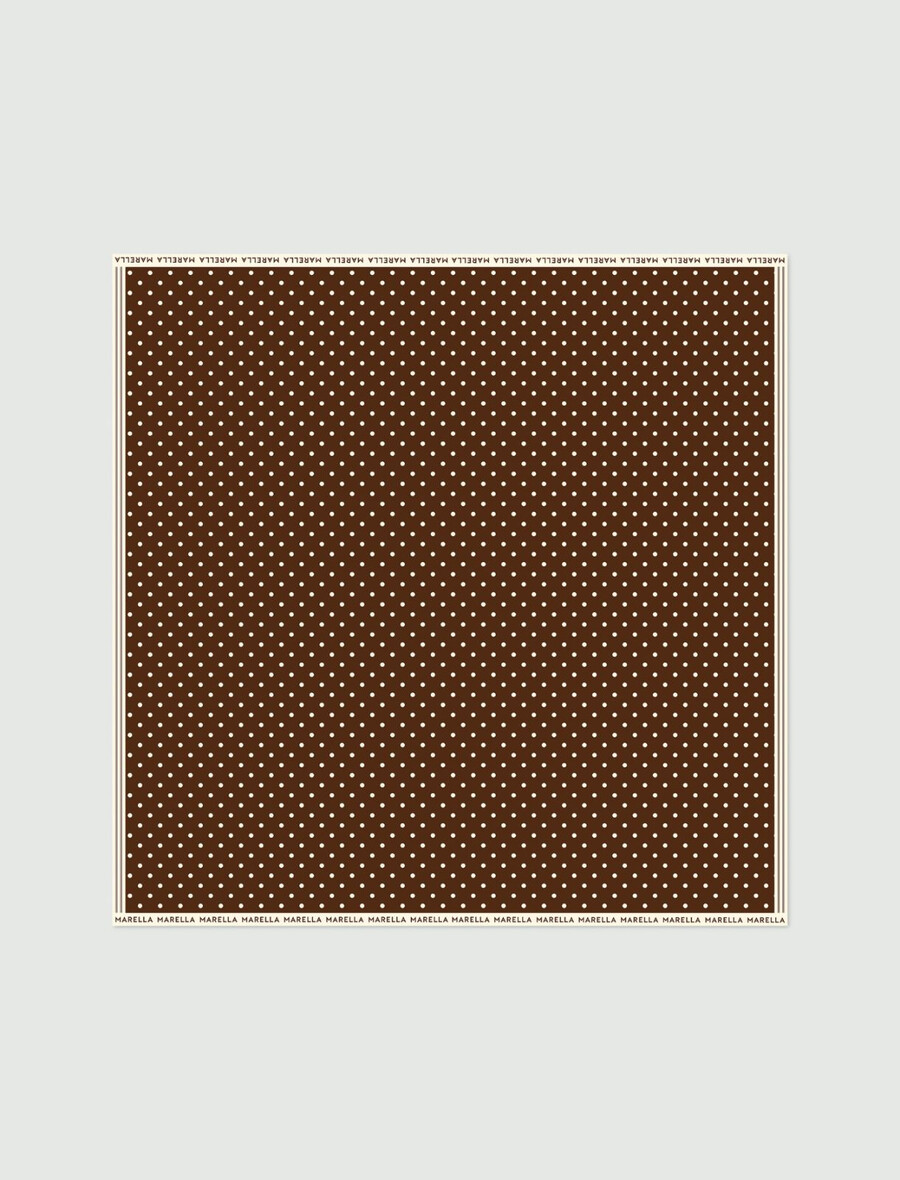 De jolis pois. Ce nouveau foulard en pure soie est orné de l’imprimé le plus ludique du moment. La bordure logotypée allie avec élégance féminité et légèreté.
