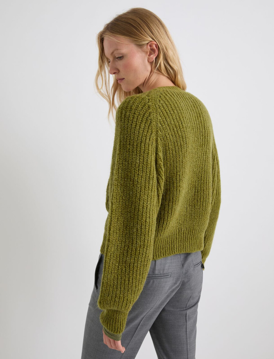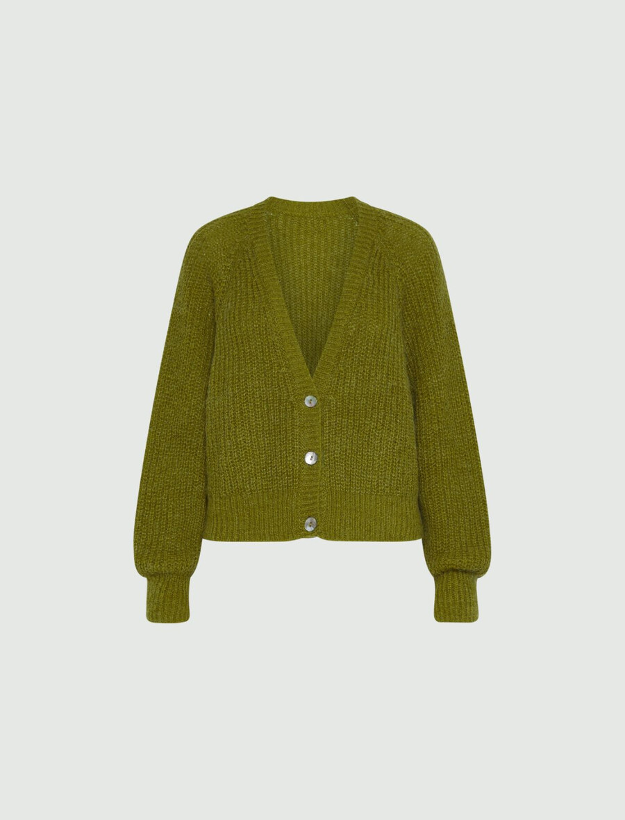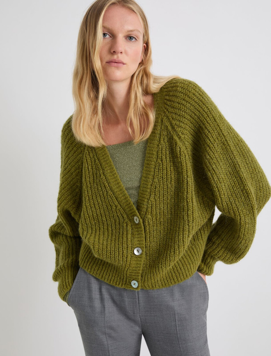 Ce cardigan chaud et enveloppant est la pièce la plus polyvalente de la saison : des teintes profondes, un tricot mi-bricole pour une texture riche et d’élégants boutons en nacre.