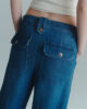 - Poches latérales obliques et poches arrière plaquées avec bouton métallique griffé