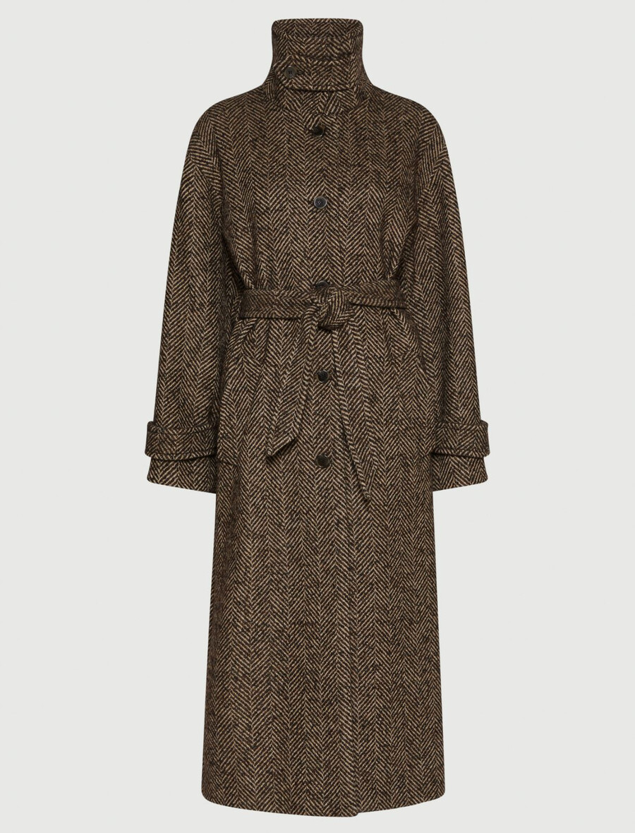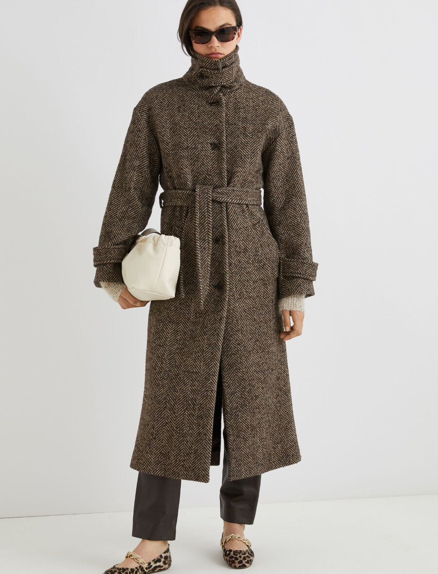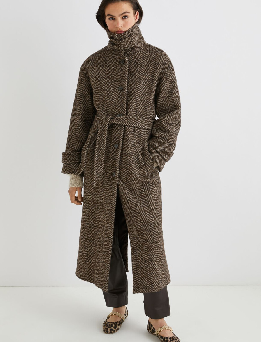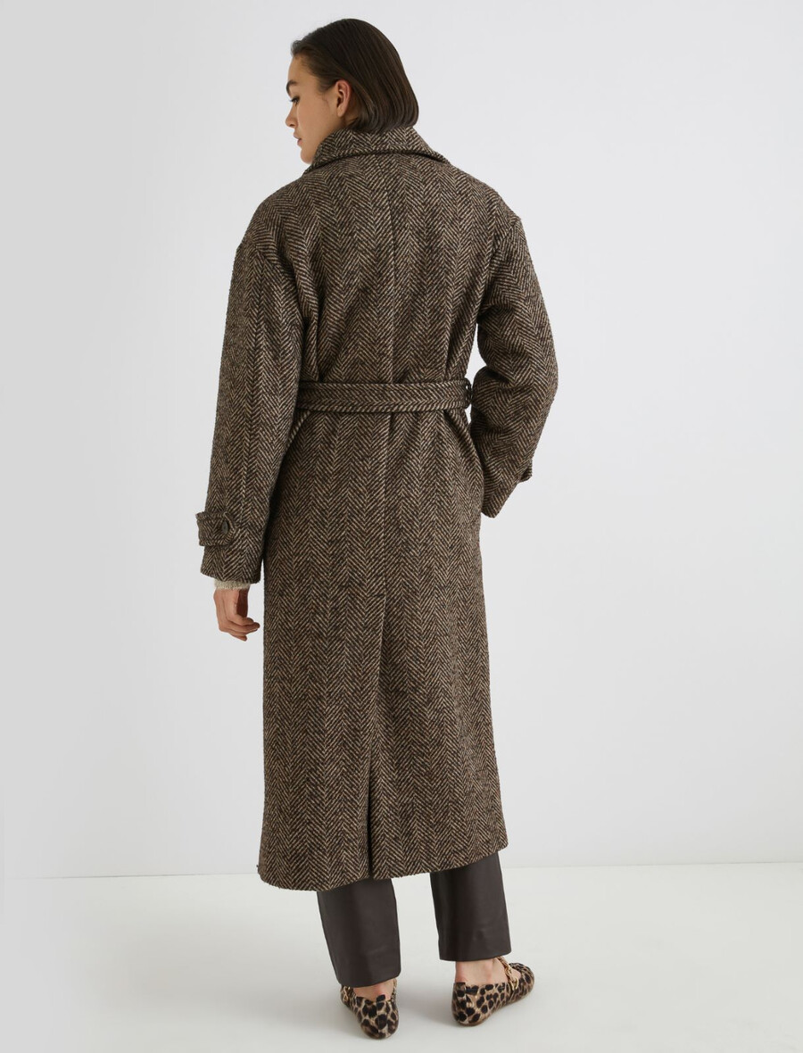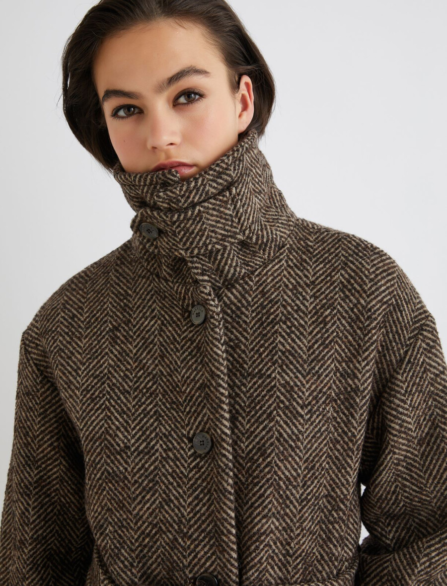 • Manteau doublé en bouclé de laine mélangée à chevrons.