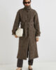• Fermeture à simple boutonnage avec ceinture assortie.