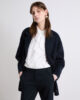 Ce manteau double en tissu duveteux et enveloppant joue avec une coupe maxi et une forme légèrement ovale, alliant une allure minimaliste à une inspiration sixties.