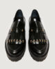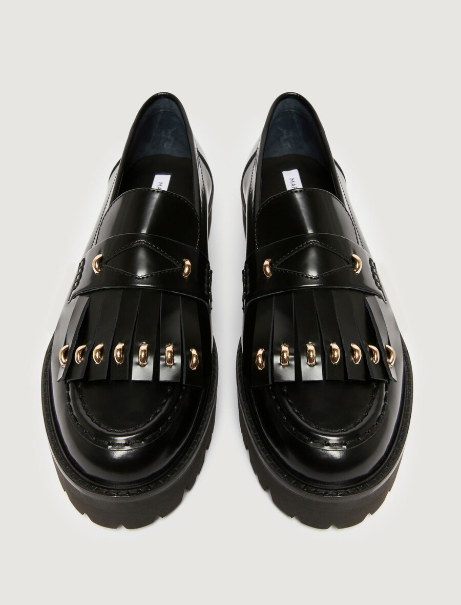 Conviviaux et dynamiques, ces mocassins imposent un rythme de marche grâce à leur bout arrondi et leurs micro-clous scintillants sur les franges.
