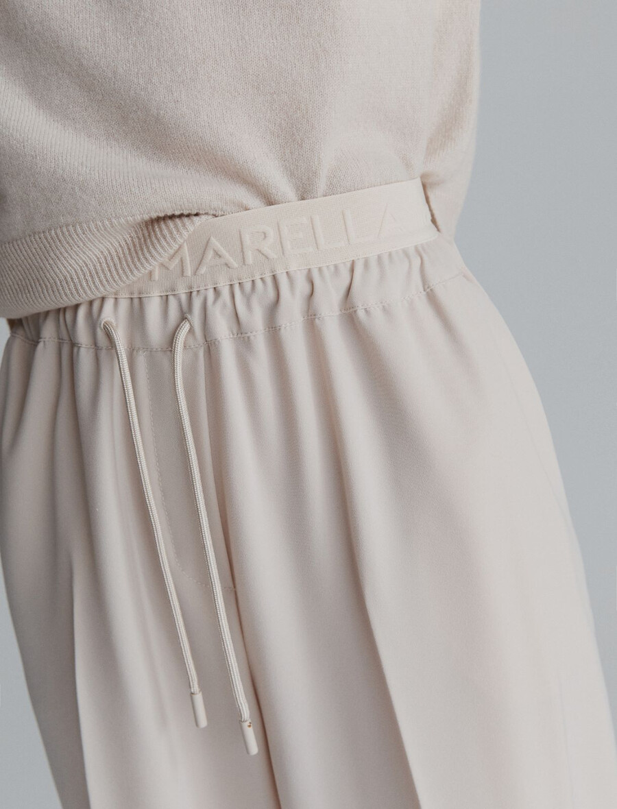 • Taille élastiquée ajustable par cordon de serrage avec logo.
