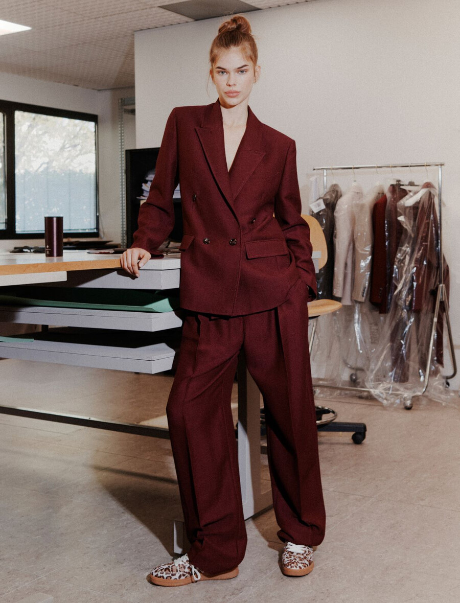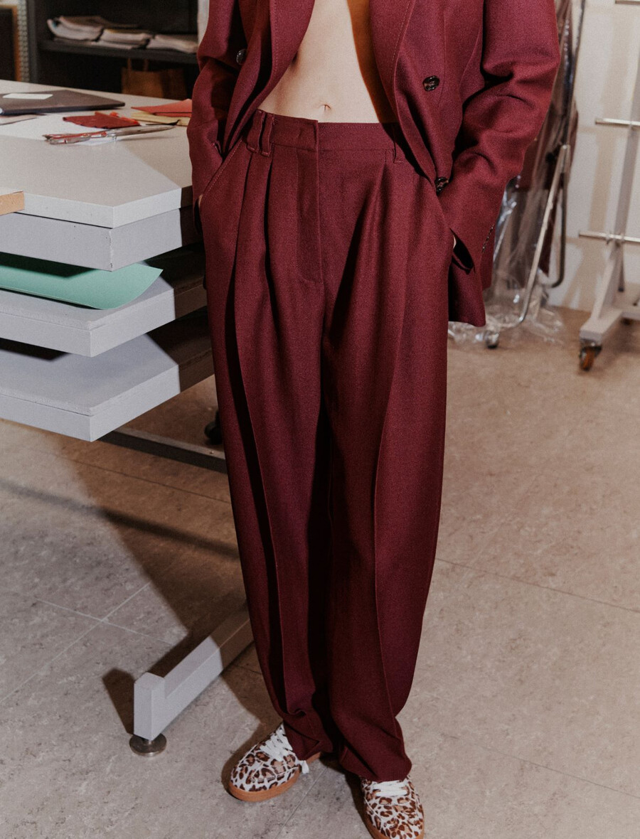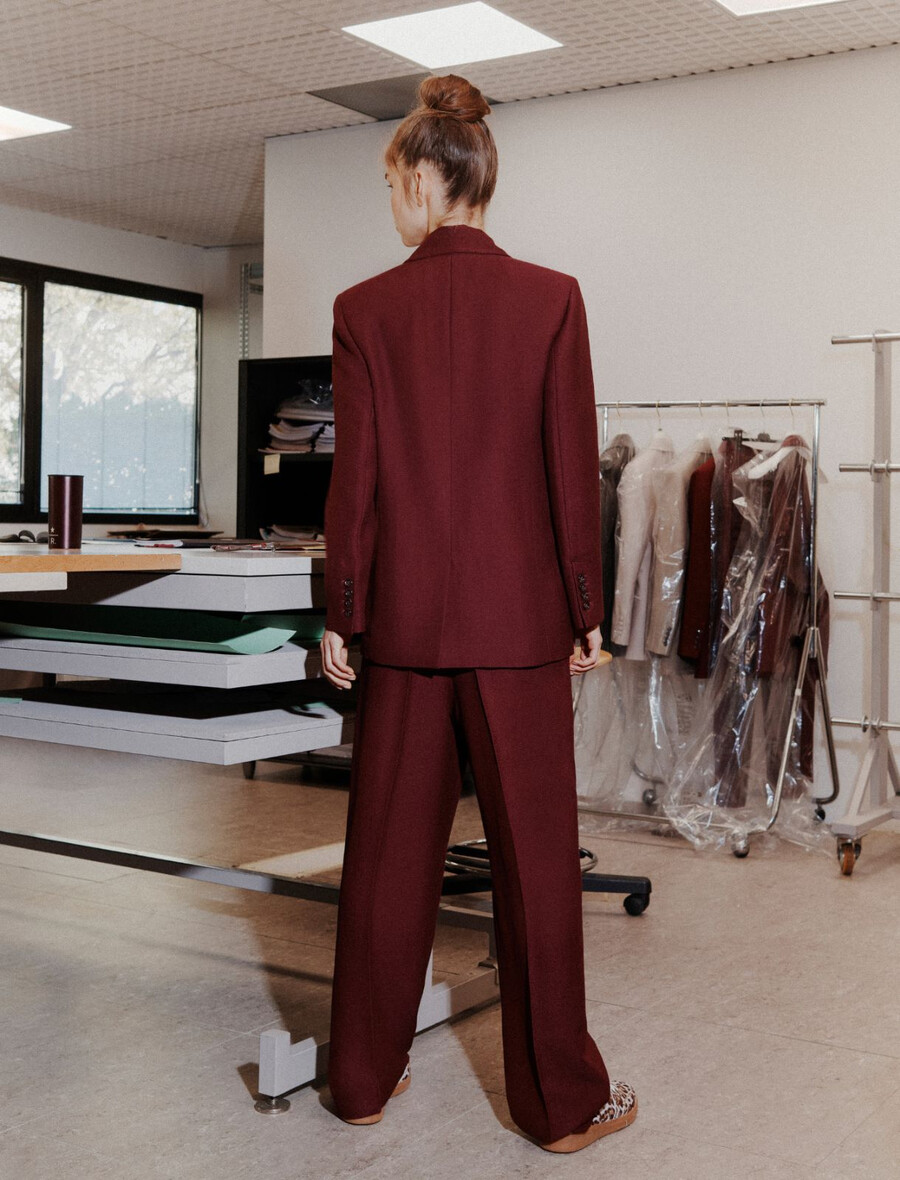 Pantalon à l’esprit urbain et à la coupe ample légèrement resserrée à l’ourlet pour une silhouette avant-gardiste. À associer avec le blazer assorti pour jouer avec les coupes et les volumes contemporains.