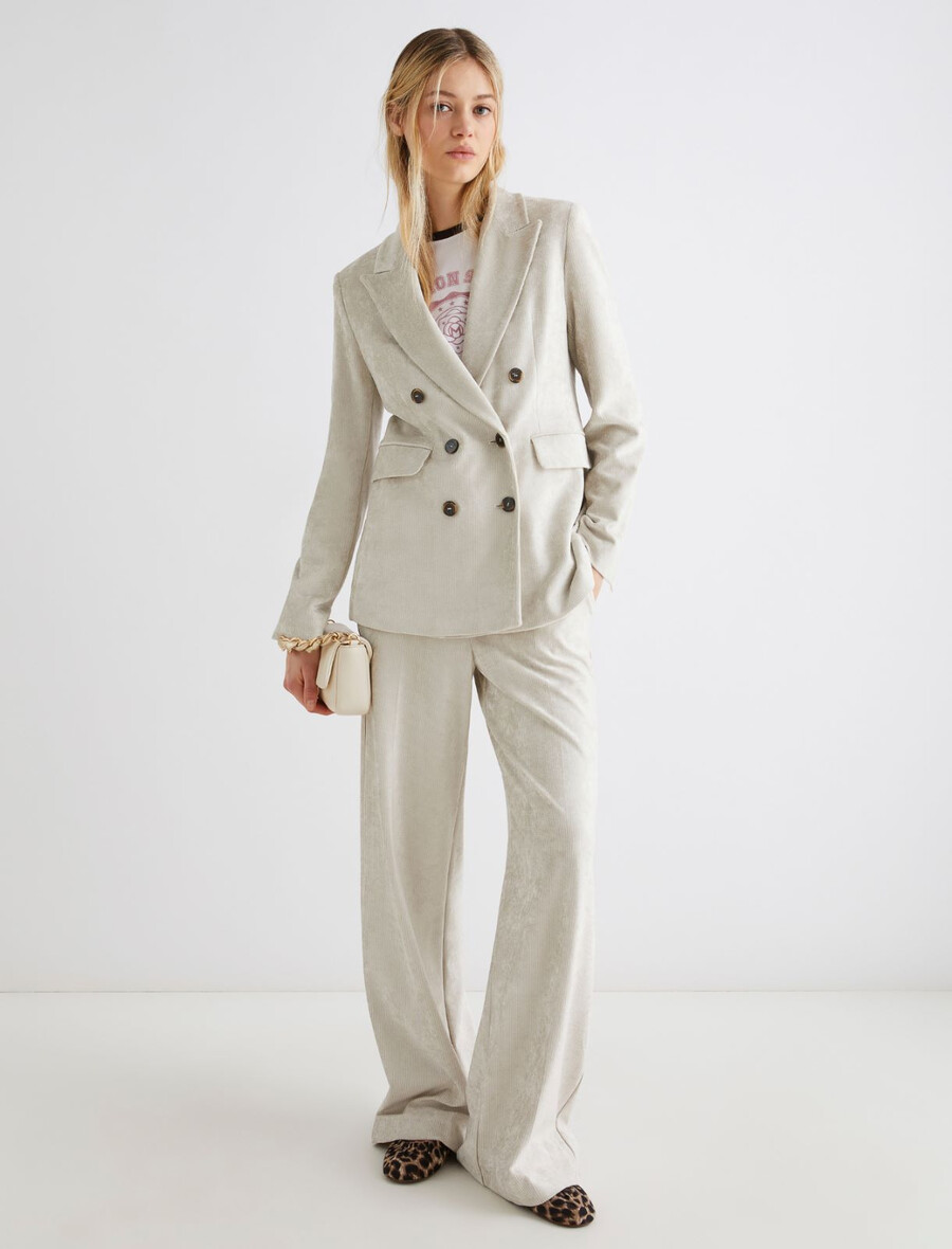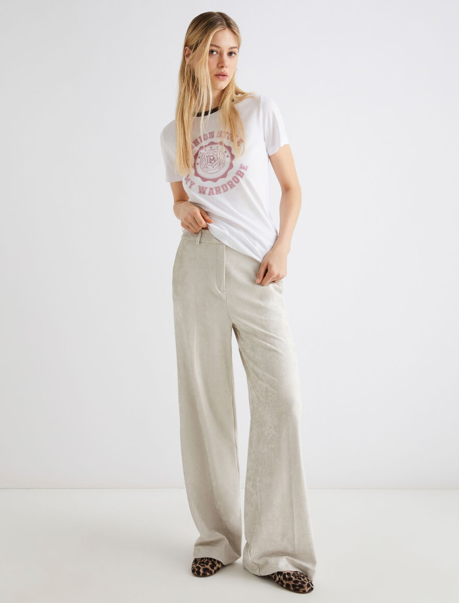 - Pantalon en jersey de viscose mélangée, aspect velours côtelé.