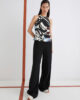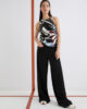 - Pantalon en crêpe satin envers avec détails en georgette.