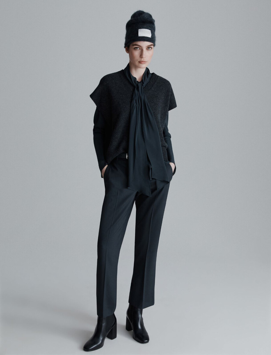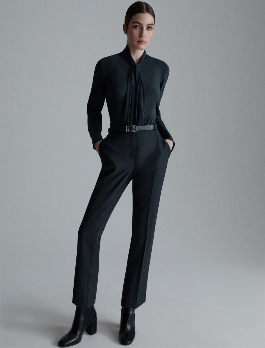 - Pantalon en gabardine de pure laine vierge.