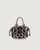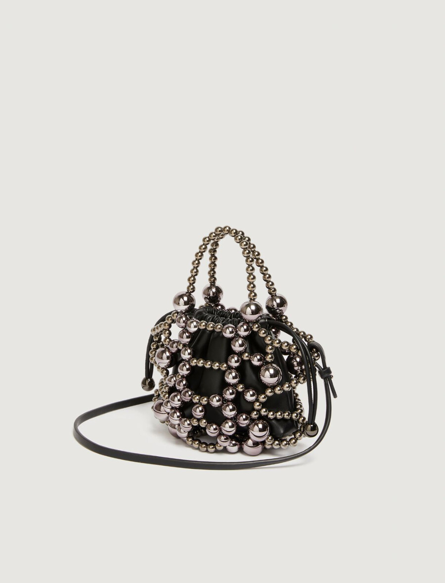 Petit par la taille, mais grand par le style : le nouveau sac seau est à mi-chemin entre l’accessoire et le bijou, orné de sphères à la finition nacrée qui forment une cage extérieure. L’intérieur comprend une pochette pratique pour vos essentiels.
