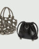 • Petit sac seau à larges maillons et détail de sphères de deux tailles.