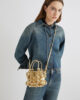 Petit par la taille, mais grand par le style : le nouveau sac seau est à mi-chemin entre l’accessoire et le bijou, orné de sphères à la finition nacrée qui forment une cage extérieure. L’intérieur comprend une pochette pratique pour vos essentiels.
