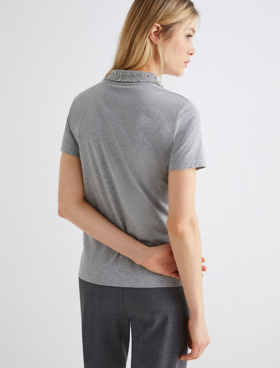 À la recherche d’un polo en jersey doux et lumineux ? Ce modèle est orné d’appliqués de strass étincelants et de boutons en nacre. Portez-le avec une parka urbaine pour une tenue citadine chic.