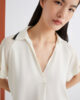 Le polo, alternative décontractée à la chemise, est idéal pour les journées plus relax. Ce modèle fluide en satin est orné de détails en georgette pour un effet de transparence sophistiqué.