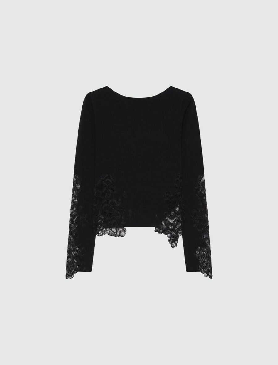 Pull ajusté orné de dentelle – NOIR