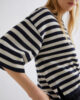 Une version urbaine du pull marin classique, confectionnée en pur cachemire pour une touche de luxe. Ce modèle légèrement oversize présente un ourlet asymétrique qui joue avec les styles.