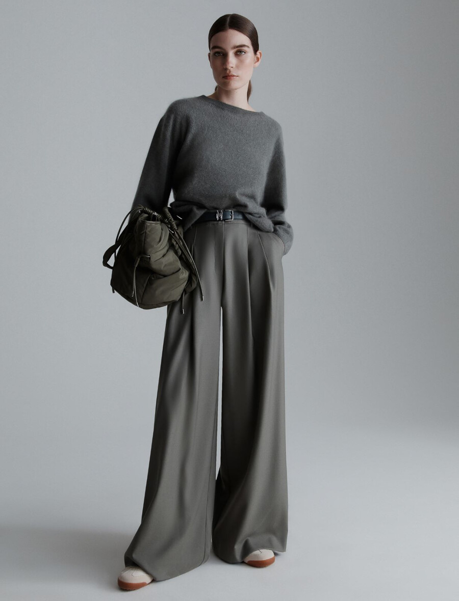 Ce pull doux et chaud en laine et cachemire arbore une coupe ample qui accentue l’allure cocon du mannequin. Pièce essentielle, il se marie aussi bien avec un pantalon large qu’avec votre jean préféré.