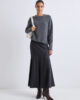 Pull en maille stretch douce d’alpaga, coupe carrée et épaules larges. Le fil bouclé lui confère une légère texture 3D qui s’harmonise parfaitement avec la jupe fluide en viscose.