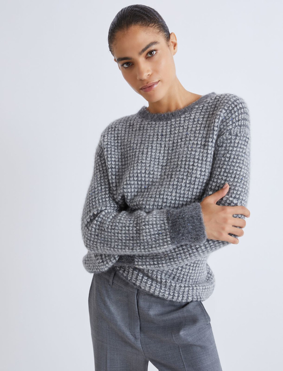 • Pull en laine et fil noueux mélangés d’alpaga bébé
