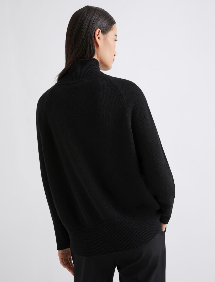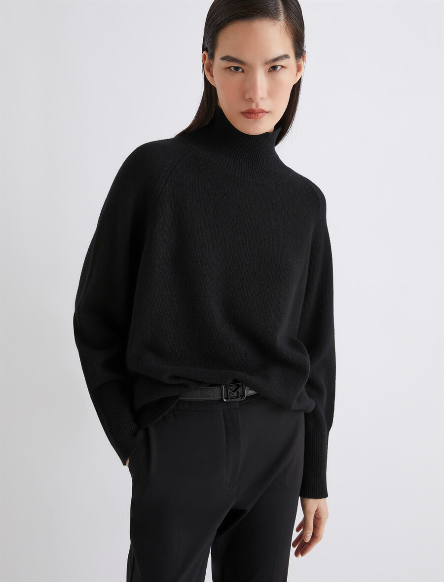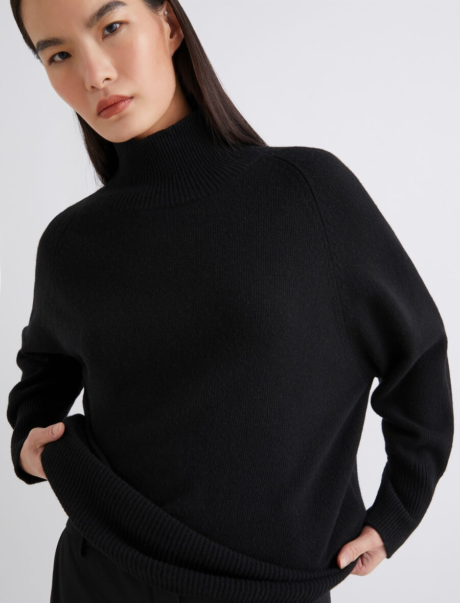 Un allié fidèle pour la saison froide : ce pull à col montant est confectionné en laine mélangée cachemire pour une douceur et une chaleur incomparables. À porter avec une mini-jupe plissée et un manteau pour un look citadin sophistiqué.